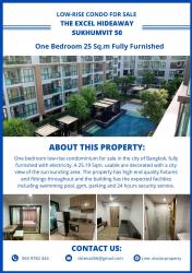 ขายดิเอ็กเซล ไฮด์อะเวย์ สุขุมวิท 50 คอนโด Low-Rise พร้อมผู้เช่า 1ห้องนอน 1 ห้องน้ำ 25.19 ตรม. ฟรีเฟอร์นิเจอร์+เครื่องใช้ไฟฟ้า Best for Investment!! The Excel Hideaway Sukhumvit50 Low-rise Condo for SALE (with tenant) One Bedroom 25.19 Sq.m.