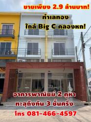 ขายเพียง 2.9 ล้านบาท! อาคารพาณิชย์ 2 คูหา ทะลุถึงกัน 3 ชั้นครึ่ง ห้องหัวมุม สภาพใหม่ ทำเลทอง ใกล้ Big C คลองหก! โทร 081-466-4597