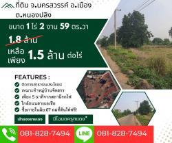 ที่ดินขนาด 1ไร่ 2 งาน 59 ตร.วา พื้นที่อ.เมืองนครสวรรค์ ต.หนองปลิง เหมาะทำบ้านจัดสรร จากไร่ละ 1.8 ล้าน เหลือไร่ละเพียง 1.5 ล้านบาท !